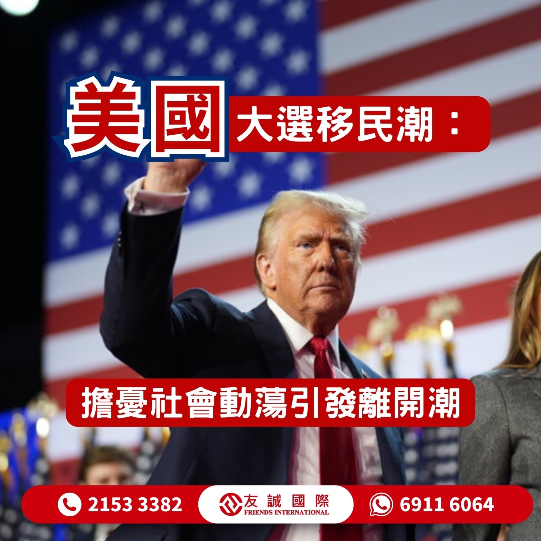 近期,美國總統大選本應是值得慶祝嘅時刻,象徵著公民嘅選擇同未來嘅希望,但有移民公司表示,大批富人正計劃離開美國,因為唔少人擔心無論誰勝選,都可能引發騷亂、政治和社會動盪。