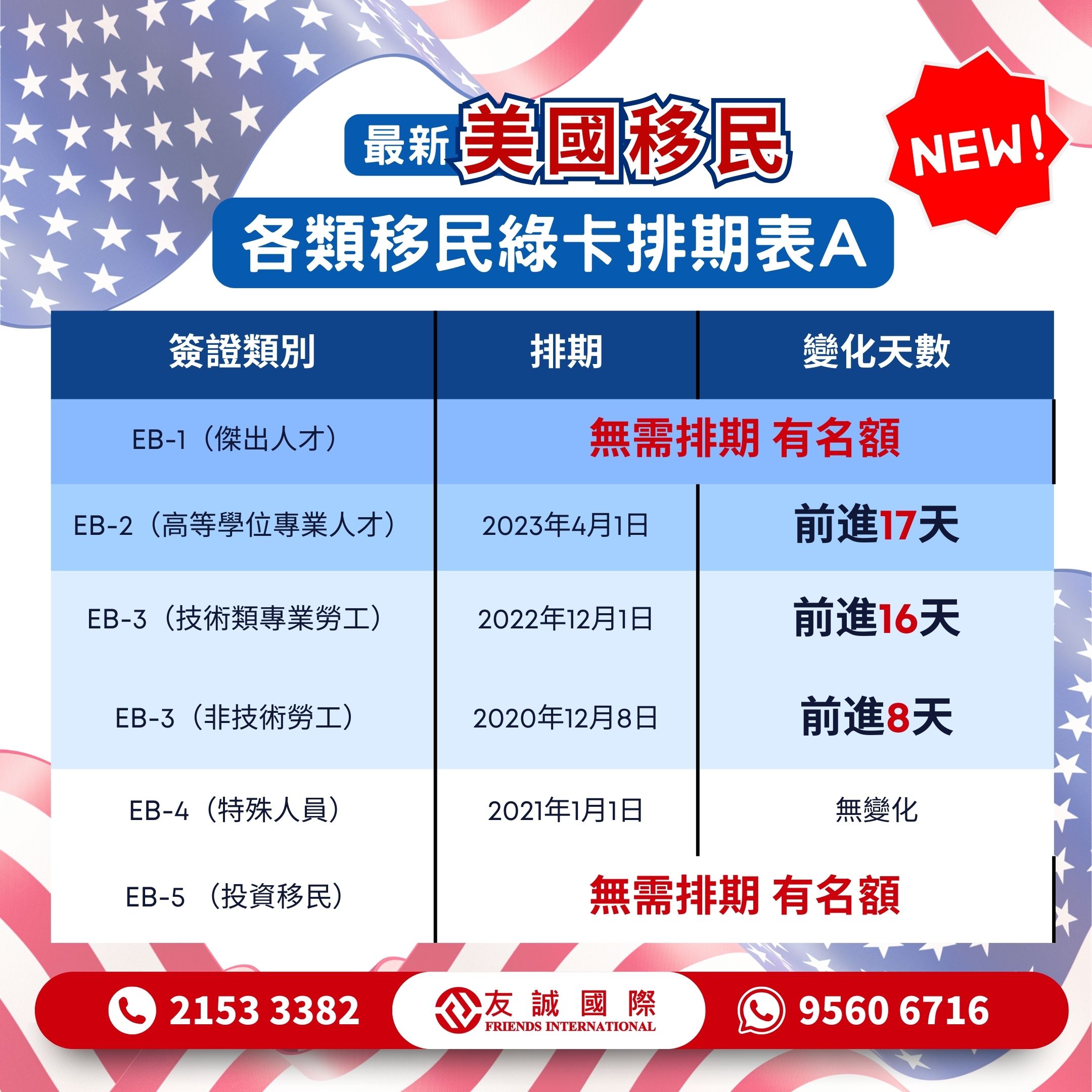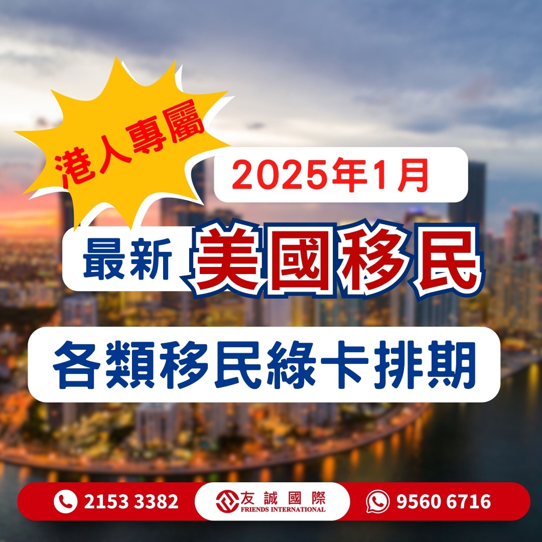 美國國務院發佈咗最新嘅2025年1月的各類移民綠卡排期!
