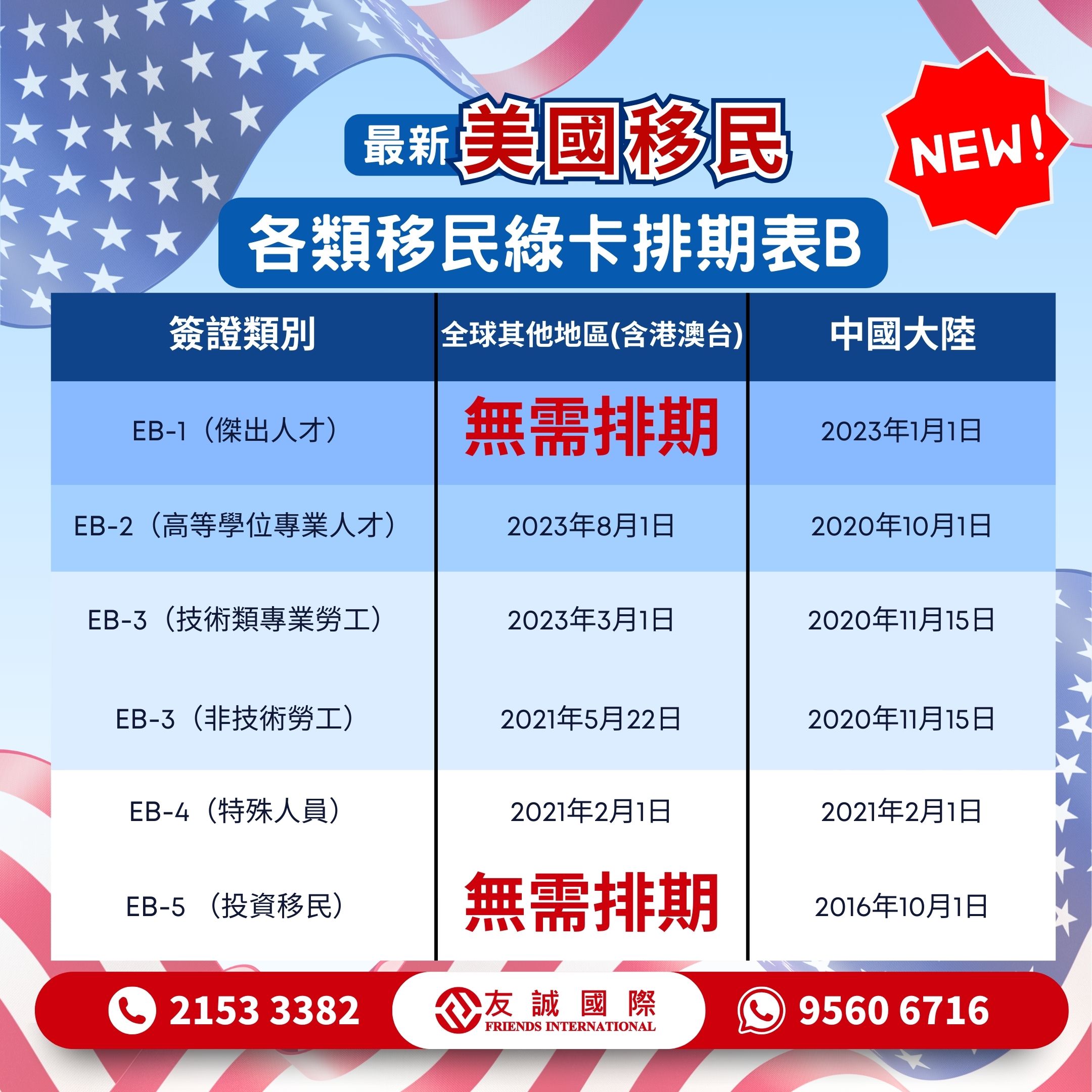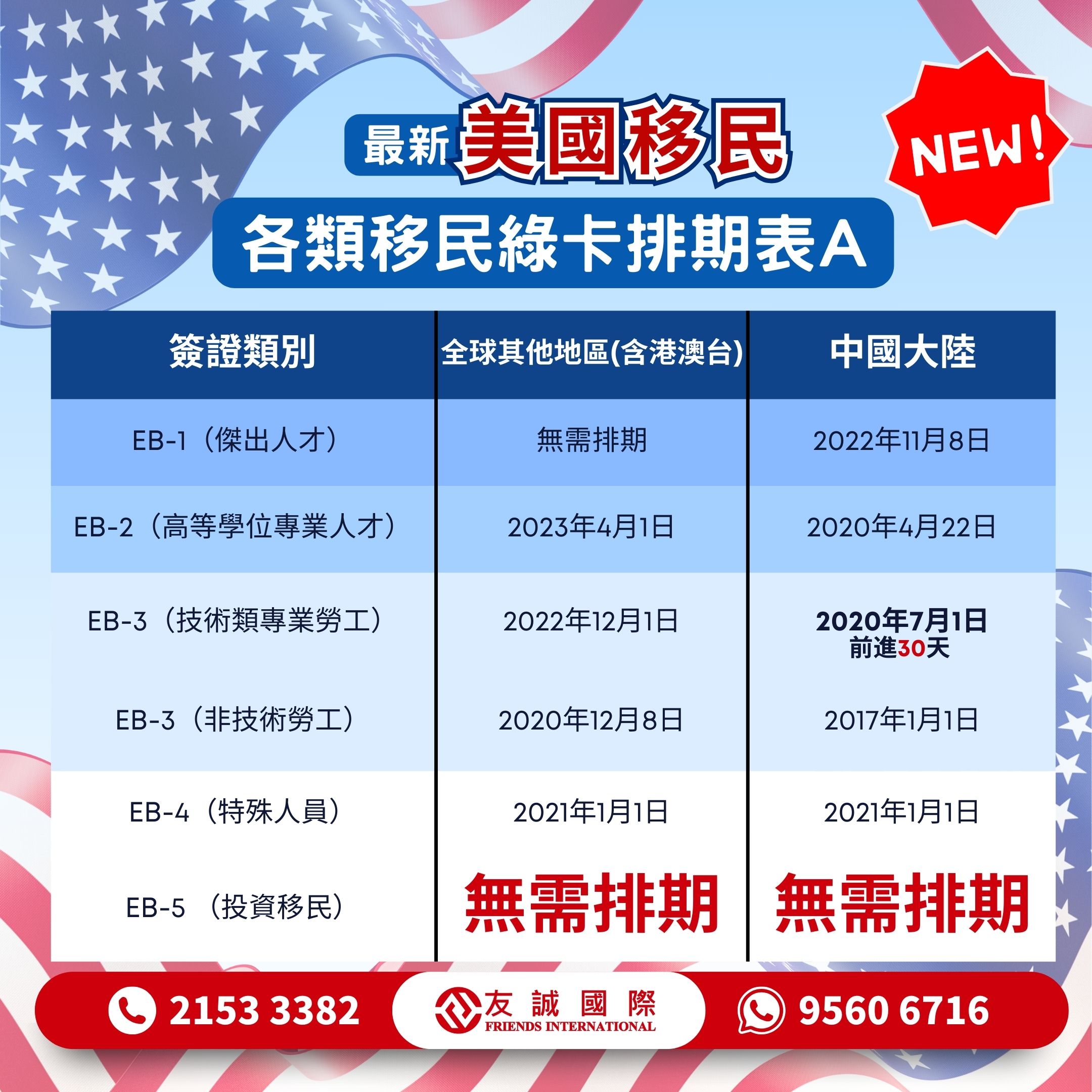 - Mainland Chinese-born #EB3 Form A progresses forward by 30 days, and #EB5 does not need to be scheduled! Remember to file your forms on time.