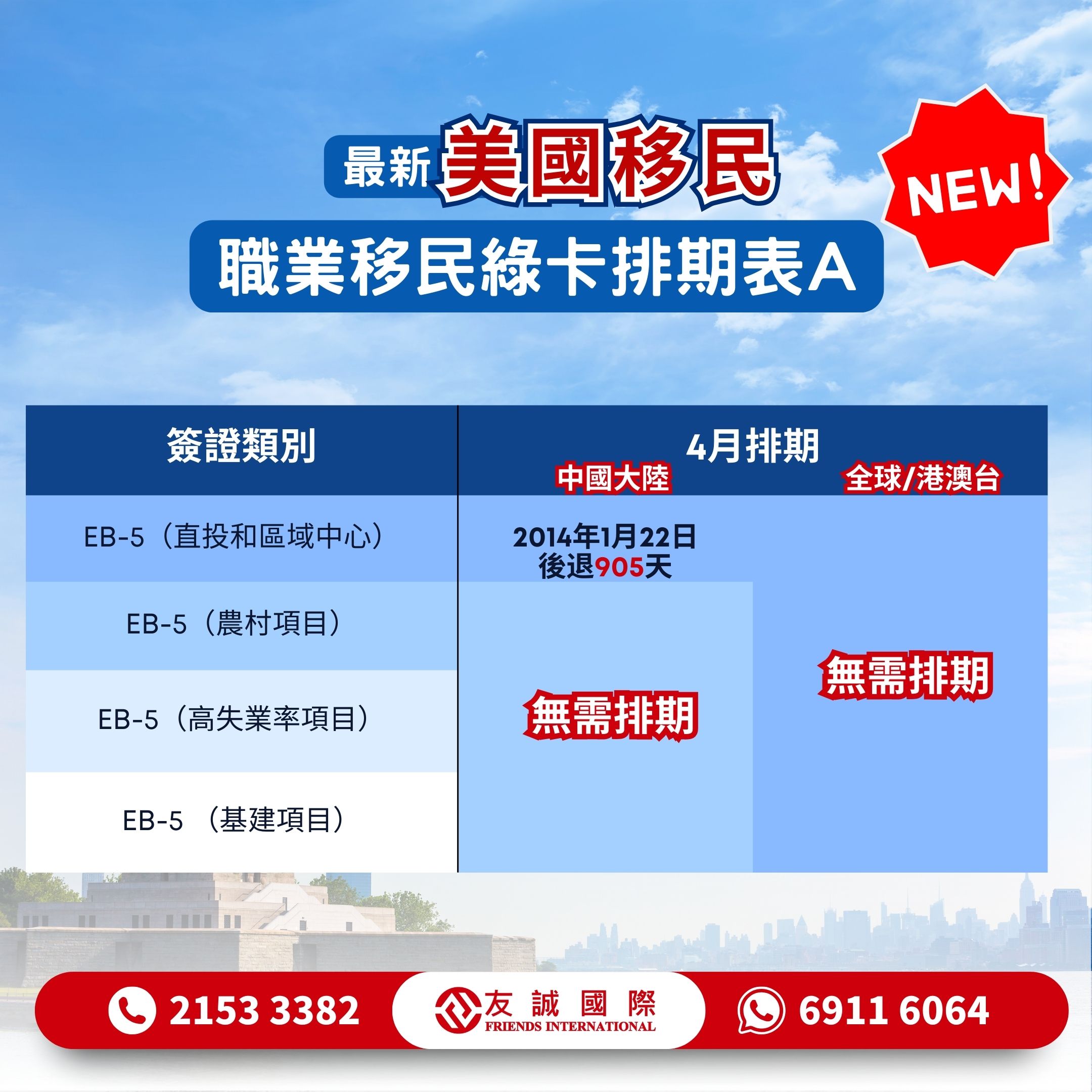 - 港人特快通道:#EB1、#EB5 依然无需排期,是快速攞绿卡之选